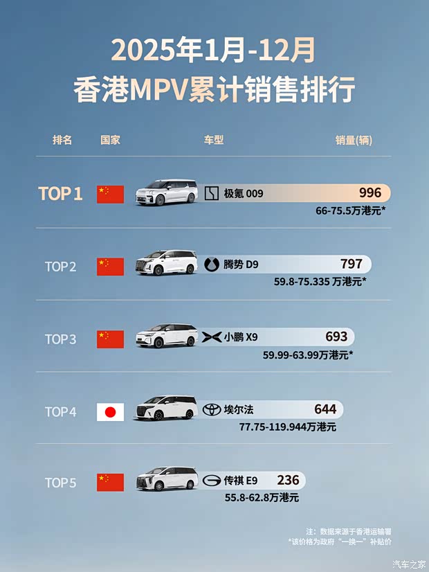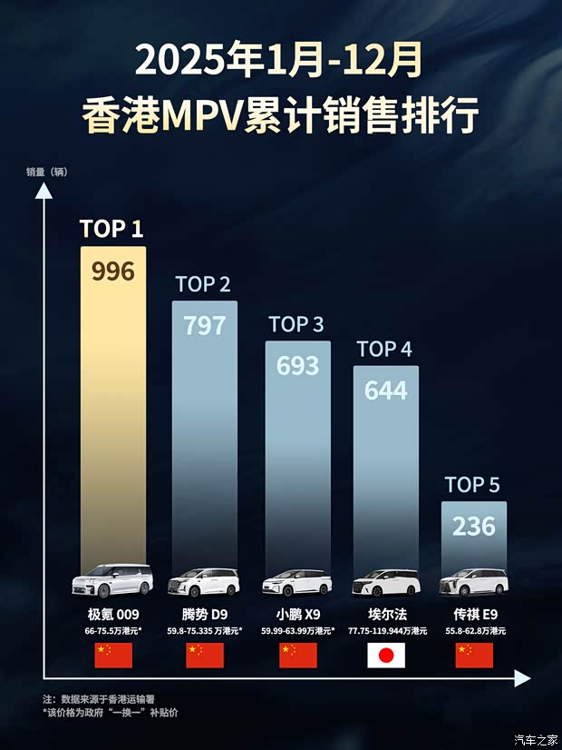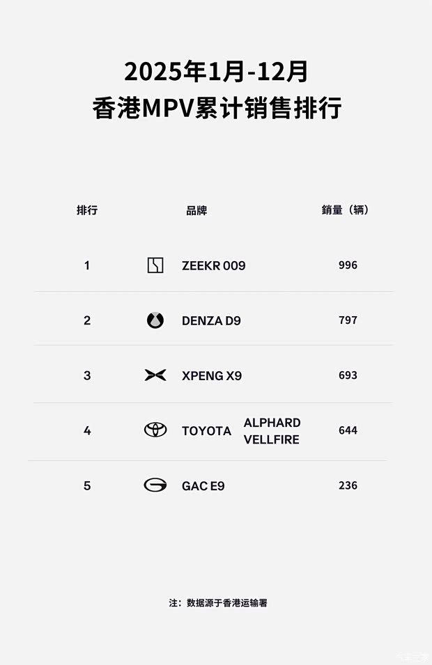 香港2025年MPV销冠