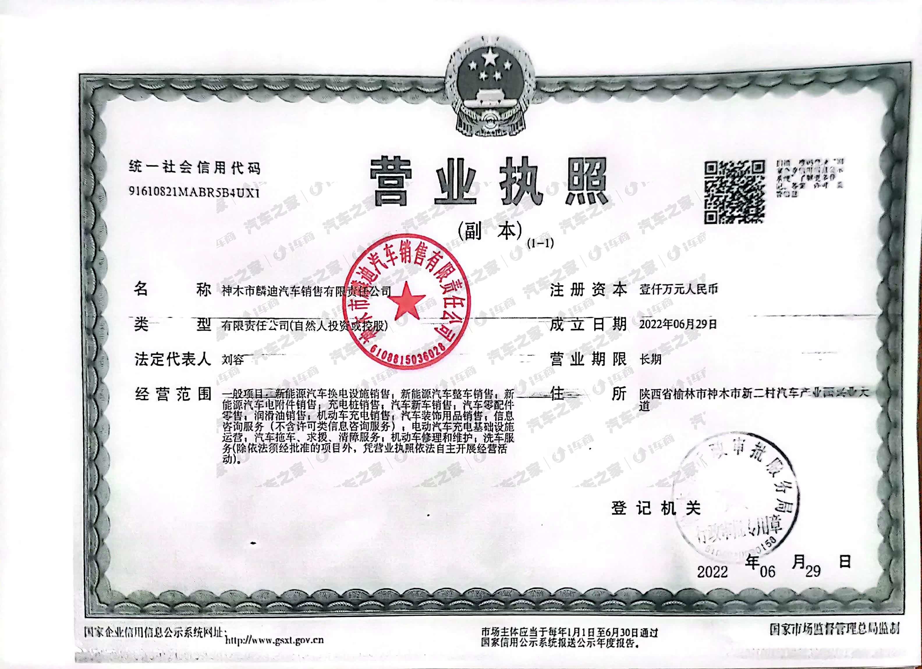 神木市麟迪汽车销售有限责任公司