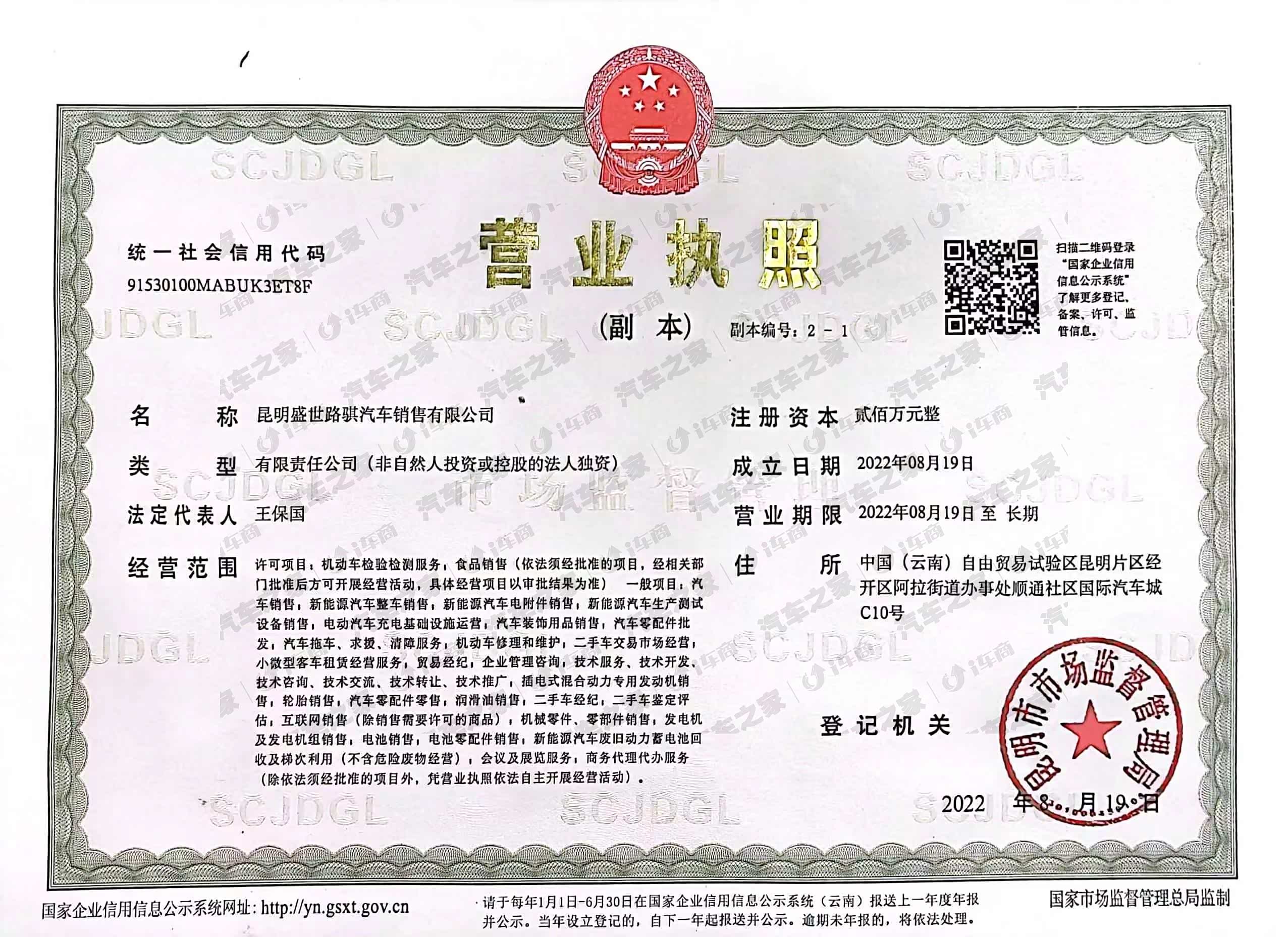 比亚迪昆明盛世路骐汽车销售有限公司,成立于2023年1月