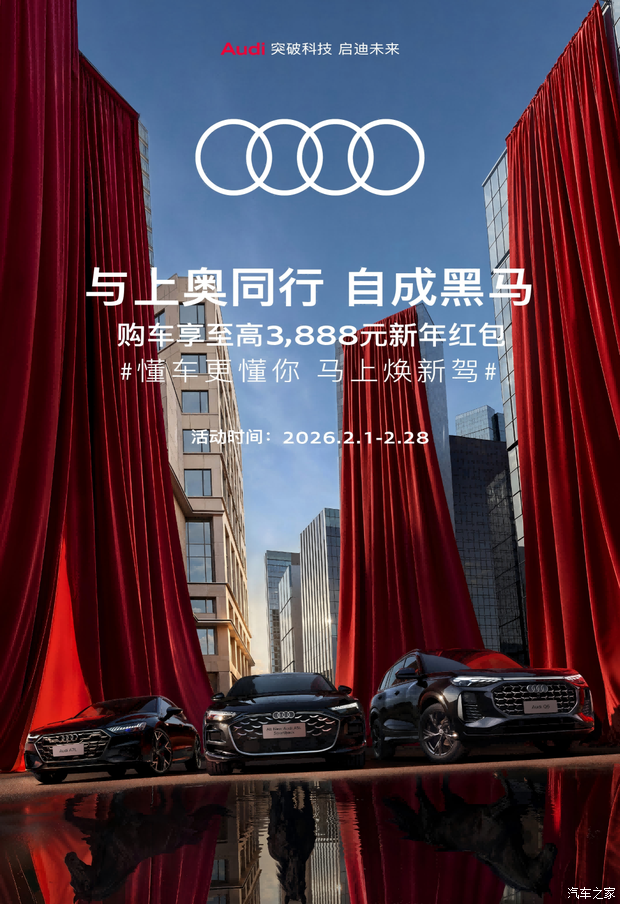 从 2 月 1 日到 2 月 28 日,只要你入手上汽奥迪 A7L、全新 A5L Sportback 或者 Q6,就能直接抱走至高 3,888 元的新年红包!这可不是什么虚头巴脑的赠品,是真金白银的购车抵扣券,直接帮你把预算往下压,这羊毛不薅简直亏大了!