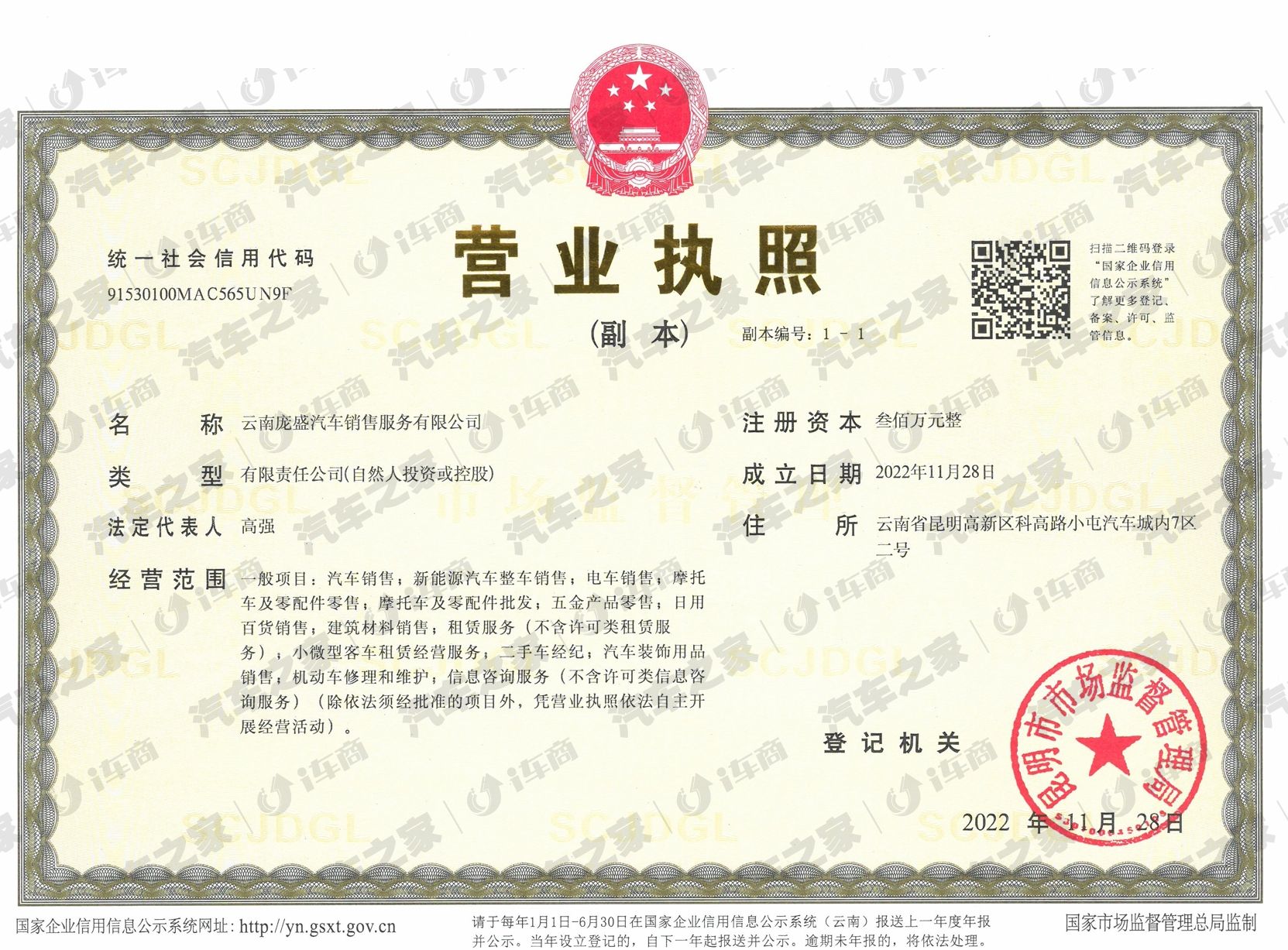 云南省昆明市高新区科高路小屯汽车城内七区二号
