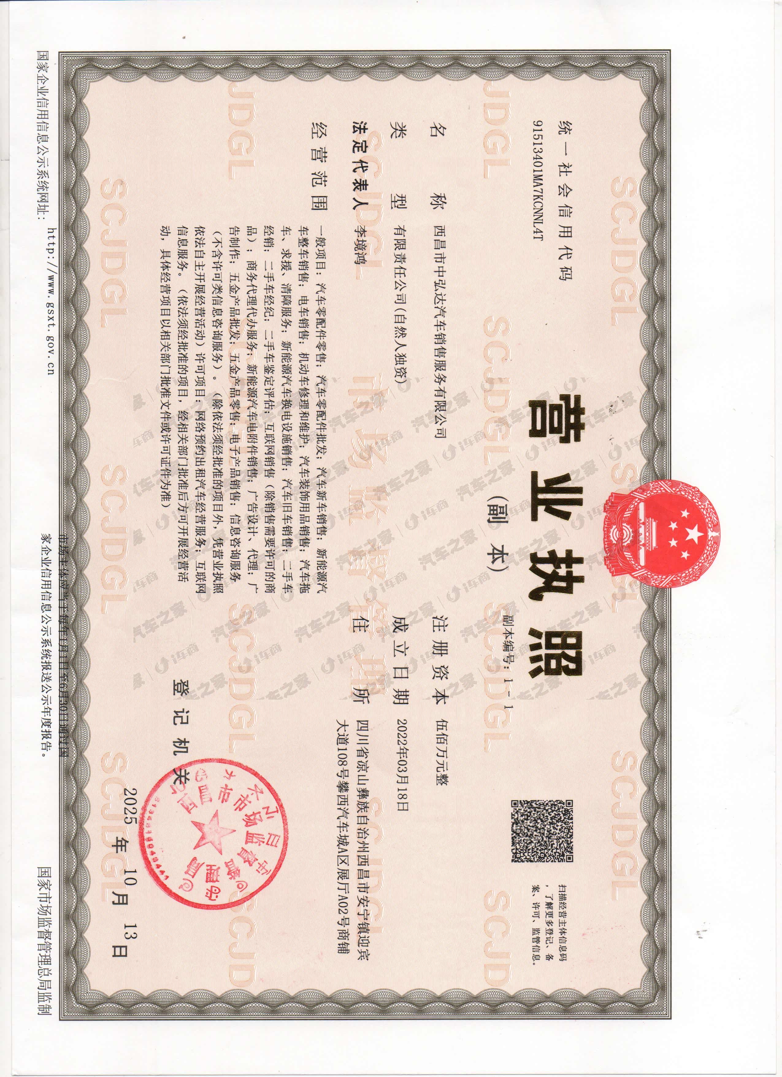 西昌中弘达奇瑞汽车销售服务有限公司(简称:“西昌中弘达”)成立于2022年7月,位于四川省凉山彝族自治州西昌市,注册资金500万元。