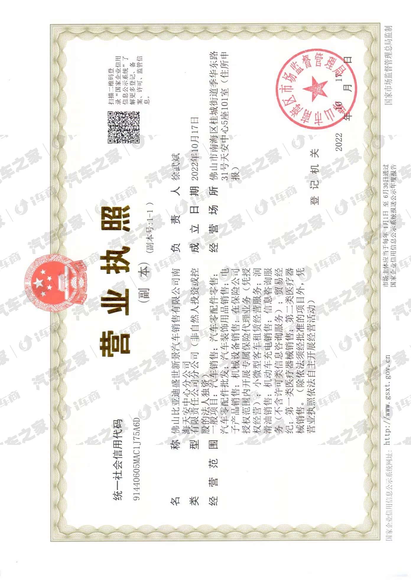 佛山比亚迪盛世新景汽车销售有限公司南海天安中心分公司(即比亚迪王朝网·天安中心城市展厅)属于比亚迪集团全资子公司,是佛山区域厂家王朝网的旗舰城市展厅。