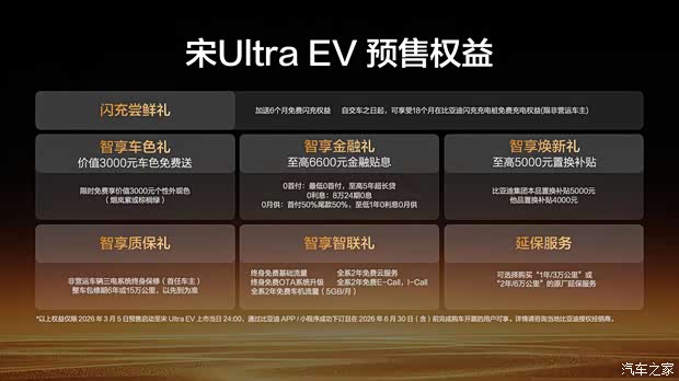 2026年3月5日,比亚迪王朝B级闪充SUV 宋正式开启预售,全系搭载比亚迪第二代刀片电池及闪充技术,同时配备多项奢适配置。新车预售价15.5-18.5万元。同时,预订用户还将享受整整18个月免费闪充权益。