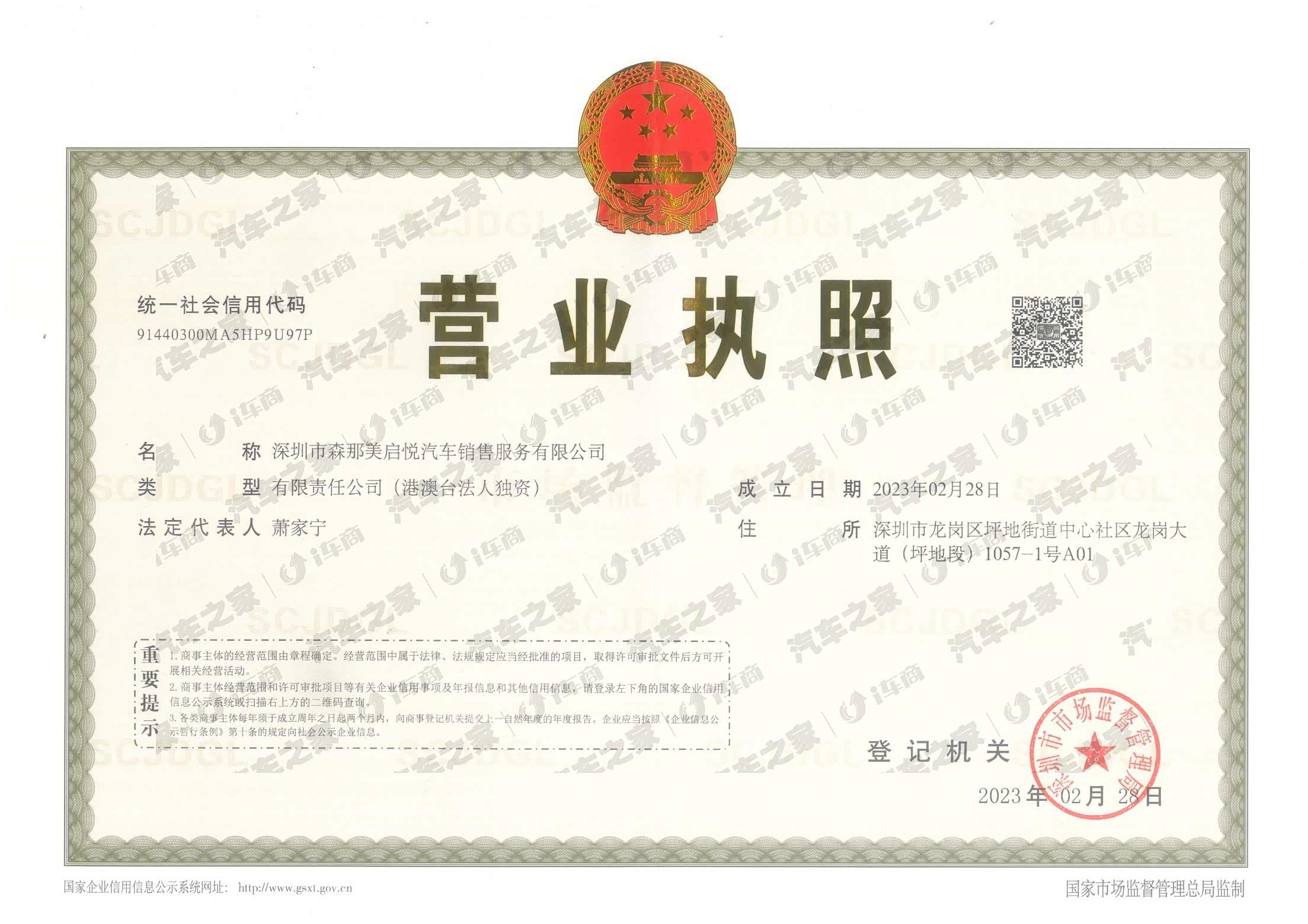 深圳市森那美启悦汽车销售服务有限公司