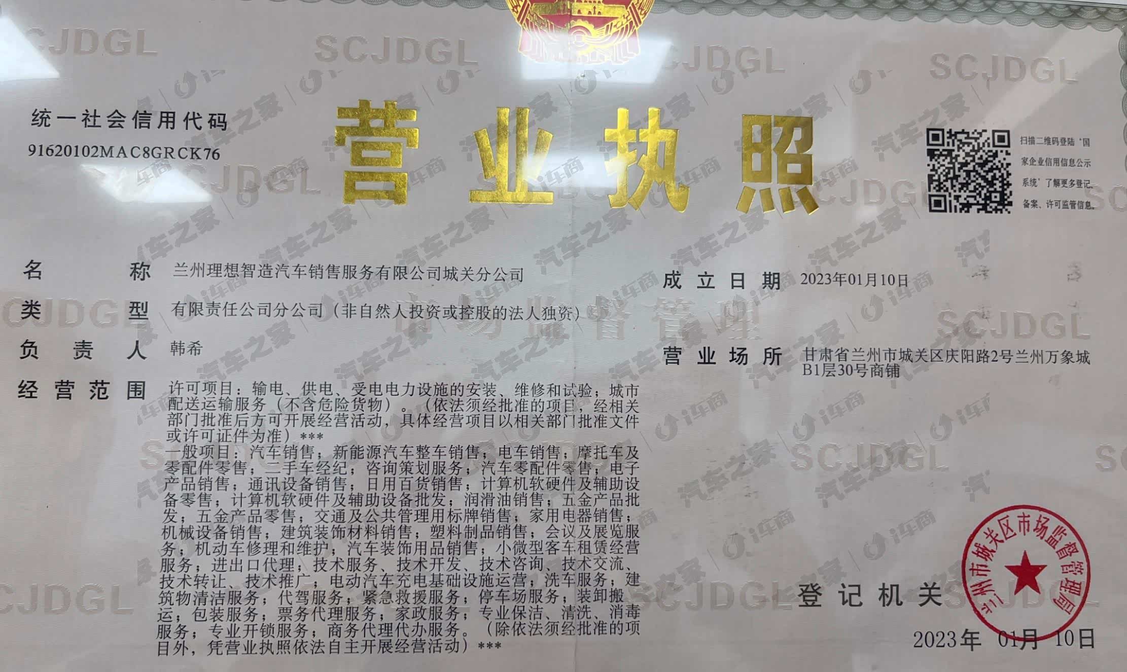 甘肃省兰州市城关区庆阳路2号兰州万象城LG号商铺 理想汽车