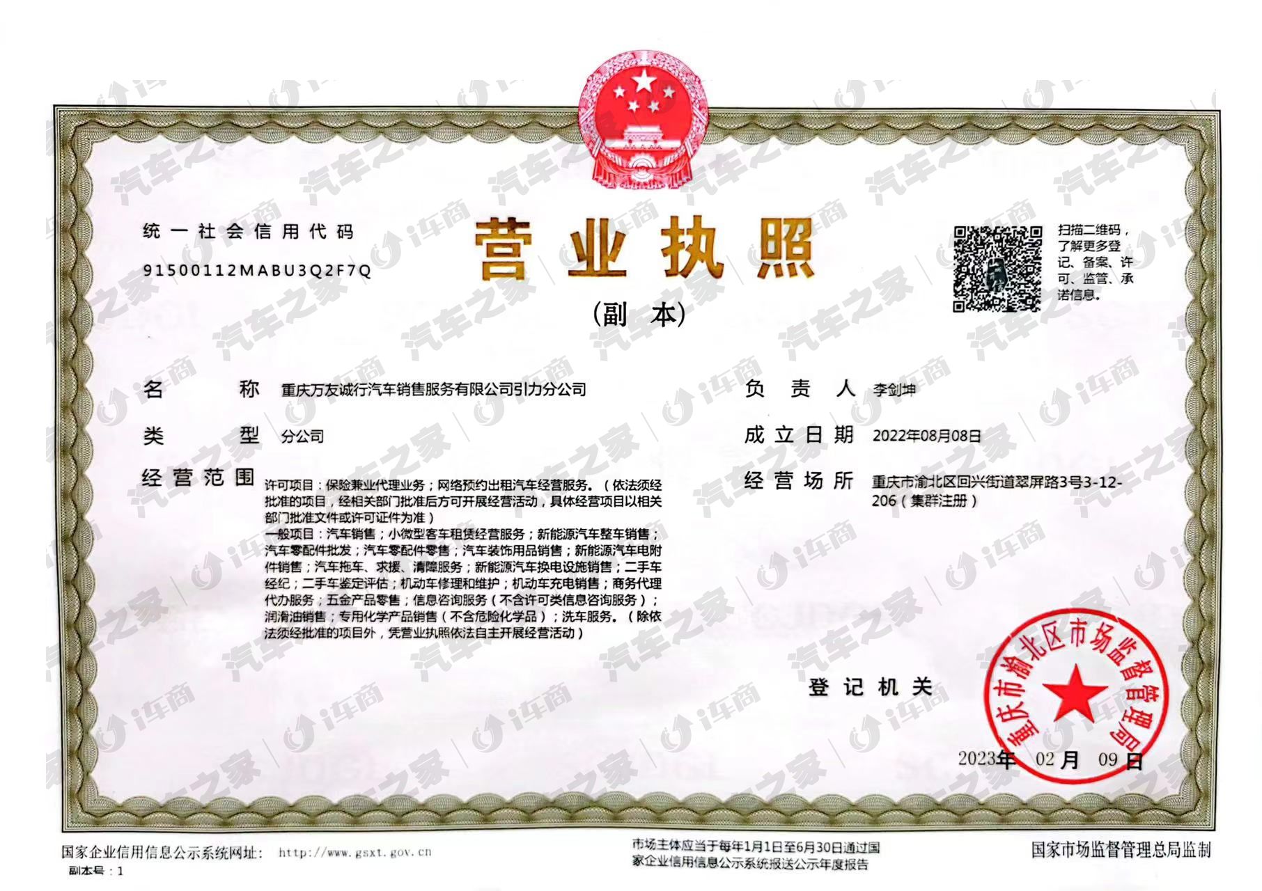 重庆万友诚行汽车销售服务有限公司引力分公司