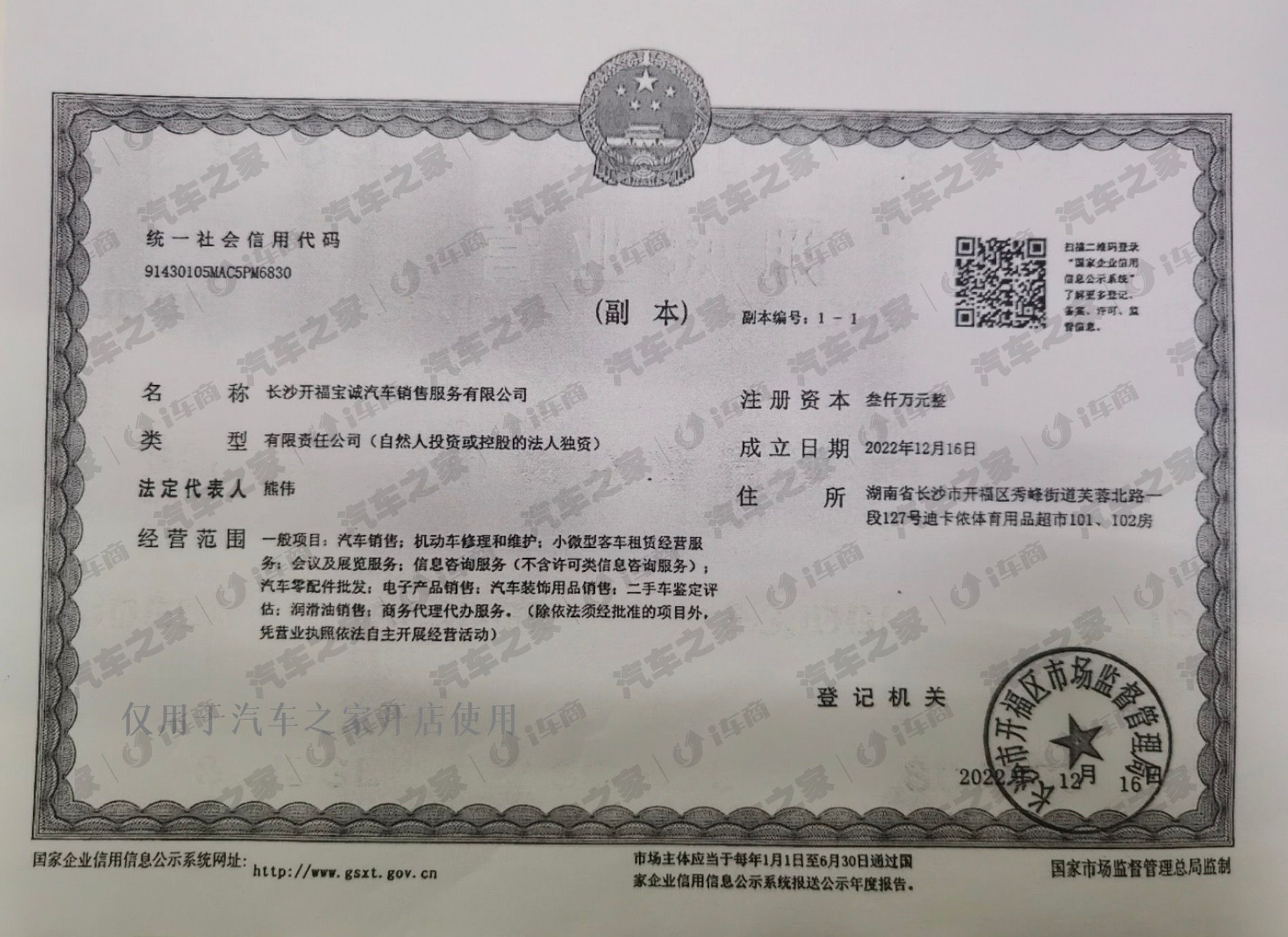 店面地址:长沙市开福区芙蓉北路一段127号
