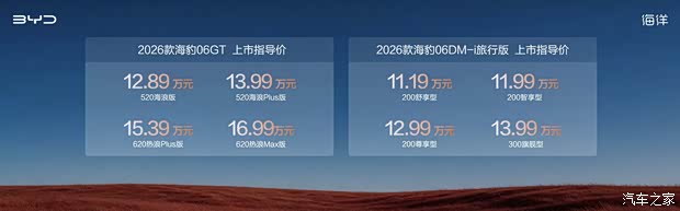 2026款海豹06GT与2026款海豹06DM-i旅行版此次焕新而来,不仅切实回应了用户真实需求,更直观彰显了比亚迪在新能源领域的技术领先性。目前两款新车已陆续到店,欢迎感兴趣的朋友走进比亚迪海洋网各大门店,亲自感受双豹齐发带来的个性出行新体验。