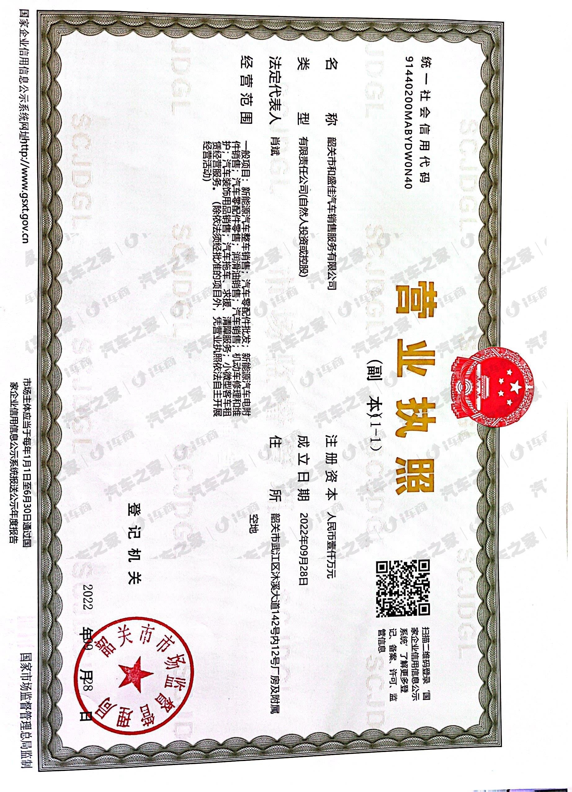 韶关市和盛佳汽车销售服务有限公司是比亚迪汽车股份有限公司在韶关市的一级代理商及特约维修中心,是比亚迪汽车在韶关市实行“整车销售、配件供应、特约维修、信息反馈”四位一体经营模式的汽车经营单位。公司实力雄厚,建立了良好的销售服务体系,形成了先进的企业管理模式。公司4S店拥有一流的室内汽车展示大厅、技术先进的维修车间、大型的汽车配件中转库和高档的办公环境,在吸引大批高端专业技术人才的同时,实施以客户满意为中心的经营理念,为广大客户提供购车、保险、上牌、信贷消费、维修、配件供应、紧急救援、三包索赔等一条龙优质服务。