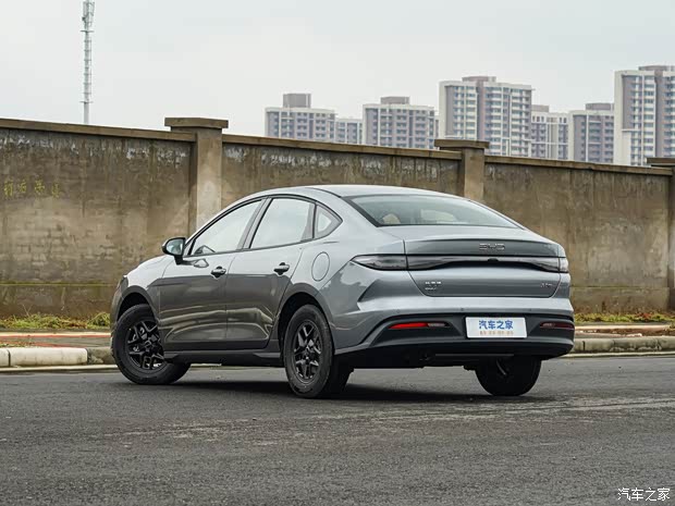 外观上,前脸是比亚迪家族式设计,大灯和海豹06DM-i相似。侧面是常规机械式门把手,后翼子板有凸起腰线。尾灯是贯穿式,排气口藏于后包围。整体风格年轻,线条流畅,没有激进设计。长宽高4780/1837/1515毫米,轴距2718毫米,在紧凑型车里是标准身材,后排腿部空间不局促。新车用16英寸轮圈,轮胎规格225/60 R16,偏舒适取向,能降低路噪,提升乘坐舒适度。