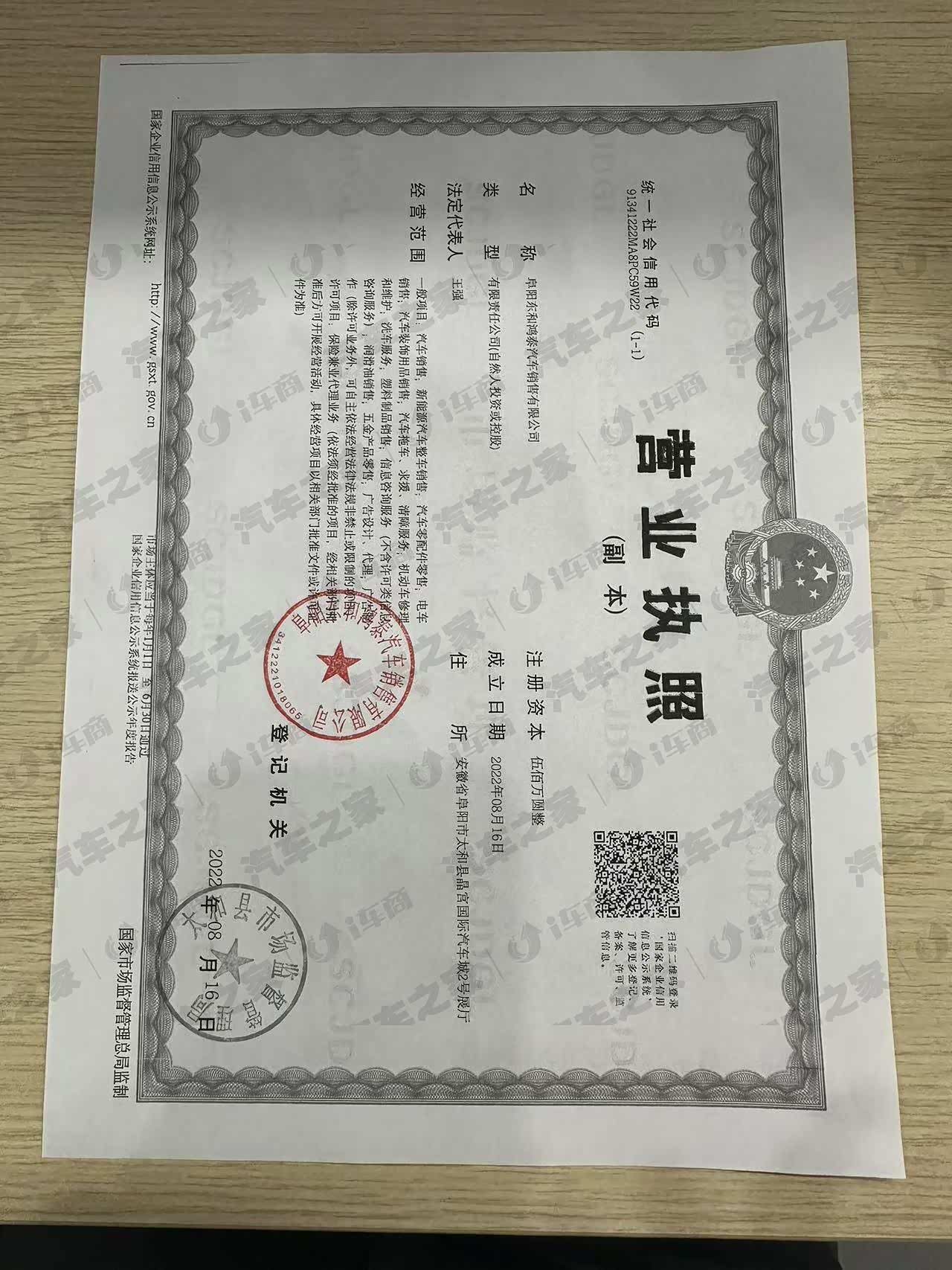 阜阳东和鸿泰汽车销售有限公司