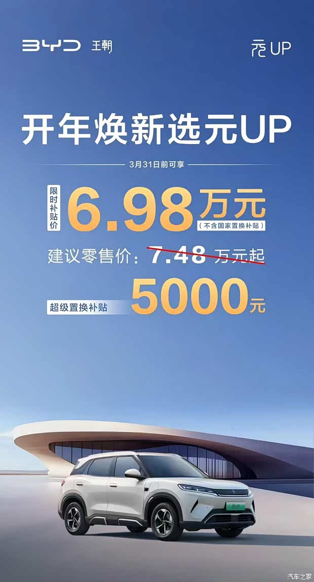 开年福利马上抢! 元UP限时补贴5000元 综合补贴后6.98万元起 年轻人购车圆梦无压力!