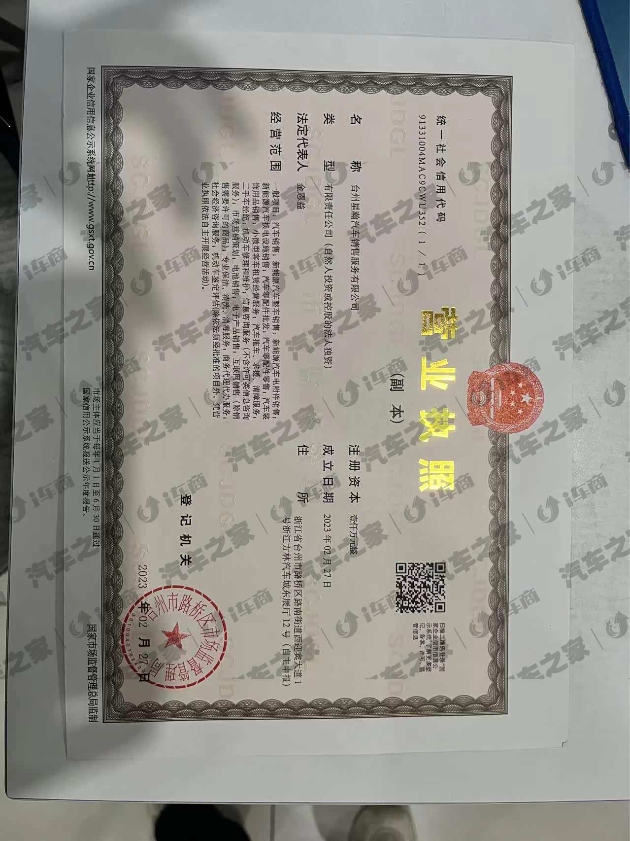台州星瀚汽车销售服务有限公司