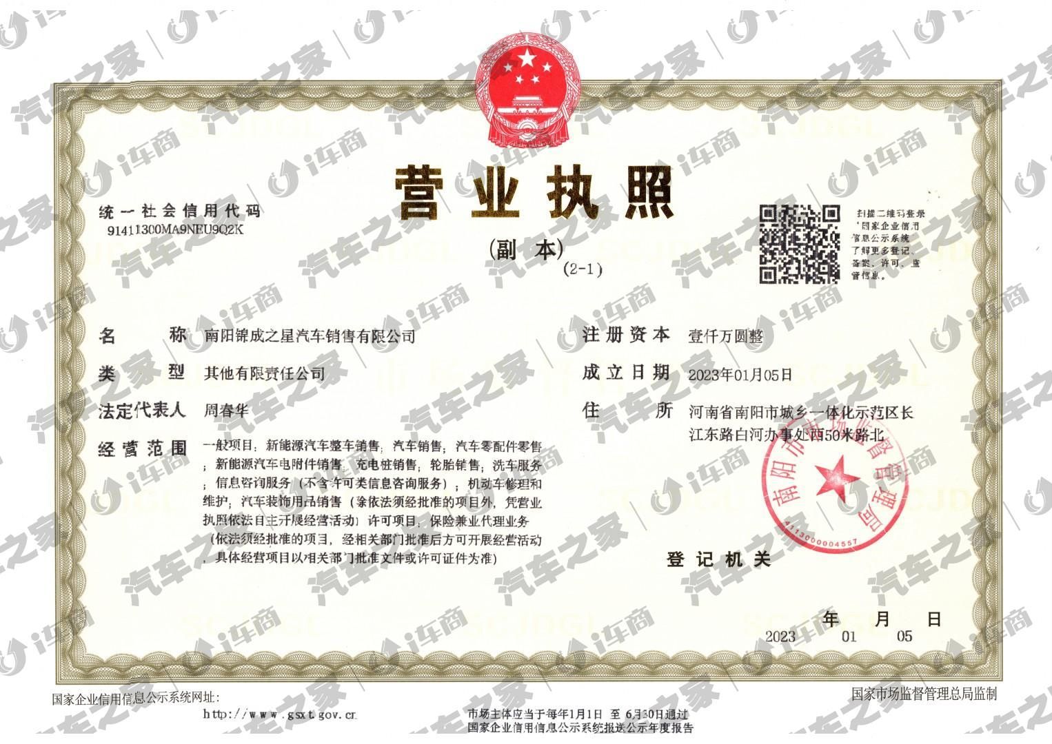 南阳锦成之星汽车销售有限公司,是豫西南唯一一家比亚迪海洋网旗舰店,座落于南阳市城乡一体化示范区长江东路白河办事处西50米路北。是一家经营新能源汽车整车销售:汽车销售,汽车零配件零售新能源汽车电附件销售:充电桩销售,轮胎售,洗车服务信息咨询服务 (不可类信息询服务):机动车修理和维护,汽车装饰用品销售。主要销售的车型有纯电车型 海豚,海豹,海鸥,海狮07,e2,宋plus EV,以及混动车型 驱逐舰,护卫舰,宋plus DMI,海豹06/07/DMI。公司在持续发展的同时,始终致力于企业文化建设,矢志与员工一起分享公司成长带来的快乐。比亚迪坚持不懈,逐步打造“平等、务实、激情、创新”的企业核心价值观,并始终坚持“技术为王,创新为本”的发展理念,努力做到“事业留人,待遇留人,感情留人”。
