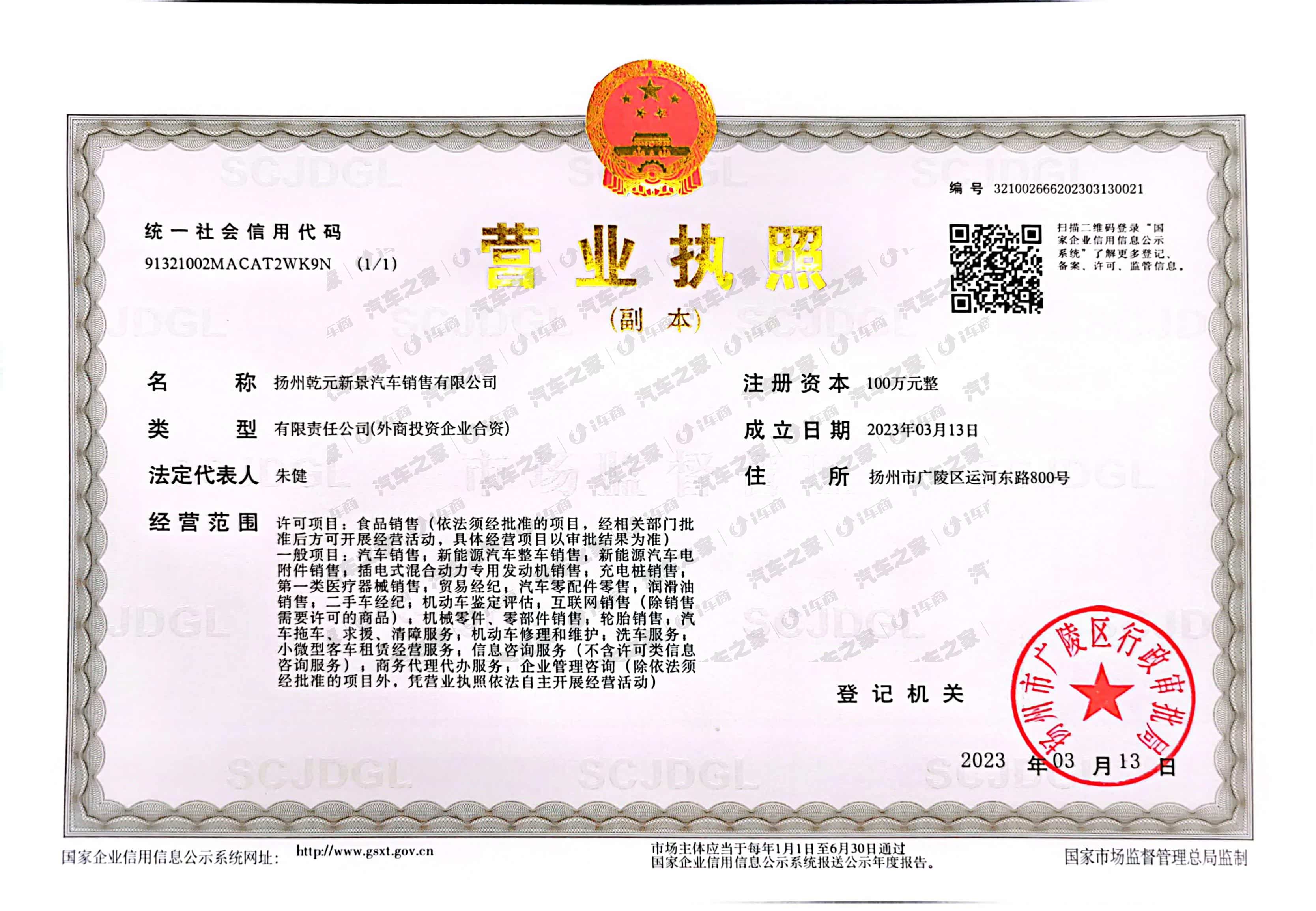 扬州乾元新景汽车销售有限公司成立于2023年03月13日,注册地位于扬州市广陵区运河东路800号,首家入住扬州市广陵新城新能源汽车智慧园,总面积达到了5000多平方米。