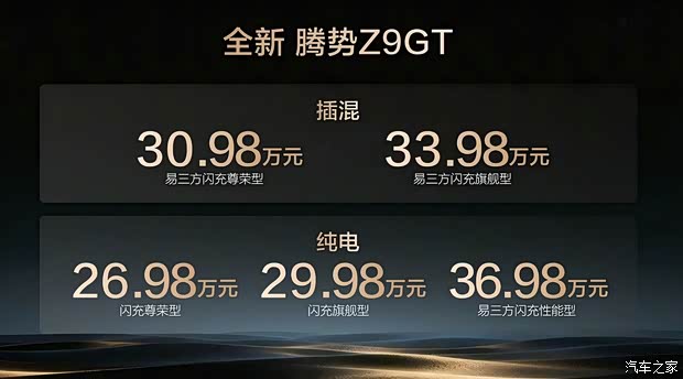 3月5日,全新腾势Z9GT正式上市,定位科技性能旗舰GT,提供纯电和插混车型,纯电包括闪充尊荣型、闪充旗舰型、易三方闪充性能型;插混包括易三方闪充尊荣型、易三方闪充旗舰型,共计五款车型。