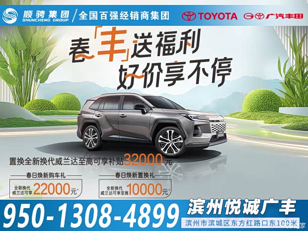 顺骋丰田滨州悦诚东方红店为您量身定制购车方案,让您省心省力更省钱!