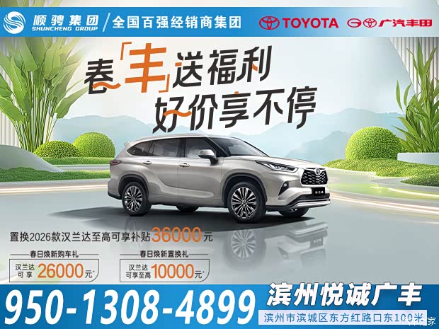 顺骋丰田滨州悦诚东方红店为您量身定制购车方案,让您省心省力更省钱!