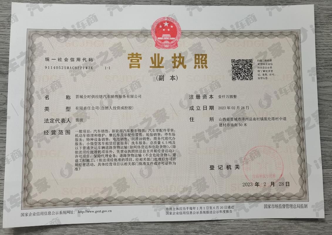 晋城全时供应链汽车销售服务有限公司