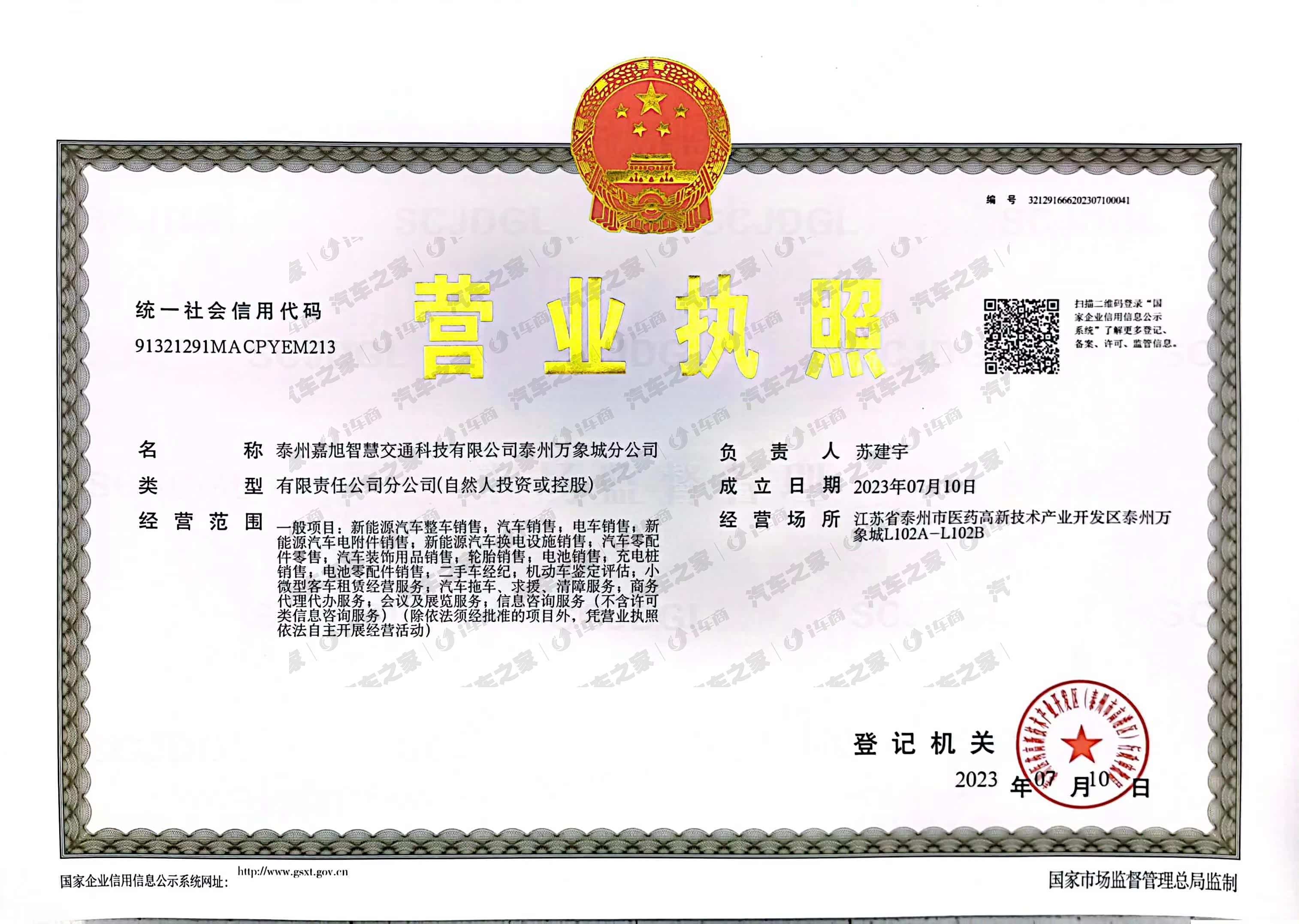 泰州嘉旭智慧交通科技有限公司泰州万象城分公司