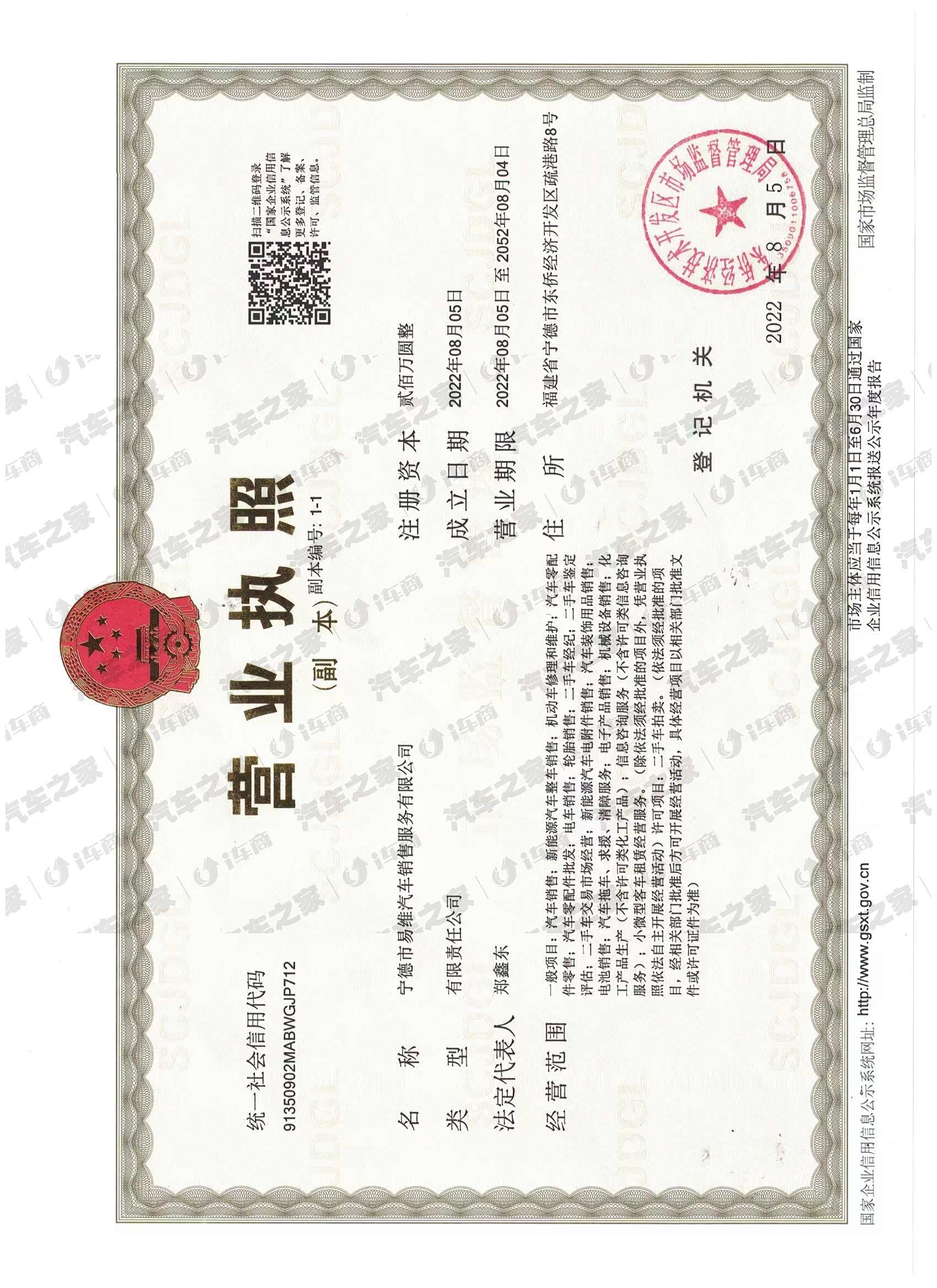 宁德市易维汽车销售服务有限公司