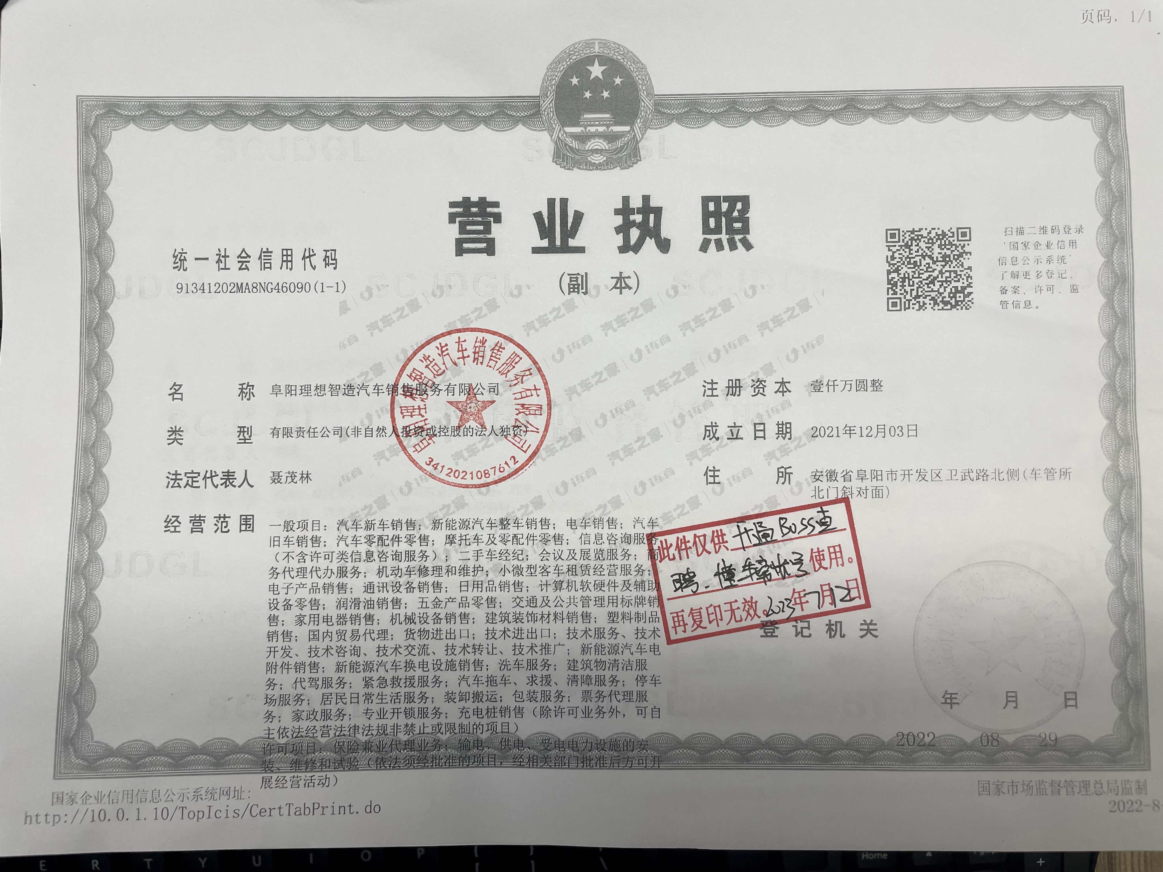 营业执照: