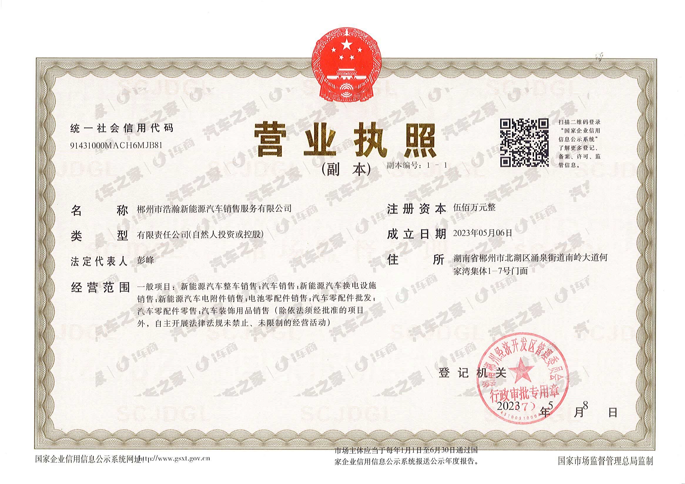 郴州市浩瀚新能源汽车销售服务有限公司,成立于2023年05月06日,是一家经浙江吉利控股有限公司授权并严格按照吉利最新要求建设银河新能源体验店,集整车销售、银河最新车型体验和信息反馈为一体。公司主要经营吉利银河品牌汽车,授权车型涵盖:银河L7,银河L6 。公司位于湖南省郴州市北湖区涌泉街道南岭大道何家湾集体1-7号门面,交通便利、地理位置优越。郴州浩瀚也是华丰集团旗下的4S店之一。