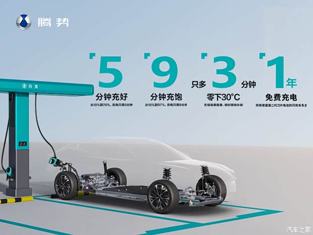 作为腾势品牌首搭全球领先闪充技术的旗舰车型,全新腾势Z9GT依托第二代刀片电池的核心技术优势,彻底打破“闪充与长续航不可兼得”的行业困境,重新定义新能源补能速度。其搭载的闪充技术实现“常温5分钟充好、9分钟充饱”的极致体验,即便在-30℃极寒环境下,从20%电量充至97%也仅比常温多3分钟,真正实现“充电如加油般便捷”,彻底解决用户续航焦虑[3][6]。同时,第二代刀片电池通过构建“锂离子高速通道”和“全温域智能热管理系统”,在实现闪充的同时,能量密度较第一代提升5%以上,搭配整车轻量化设计,纯电版最高续航可达1036公里,成为全球续航最长的量产纯电车型之一。此外,腾势配套的1500kW全球量产单枪最大功率闪充桩,采用“滑轨悬吊式T型桩”设计,实现零重力充电、即插即充,进一步升级补能体验。