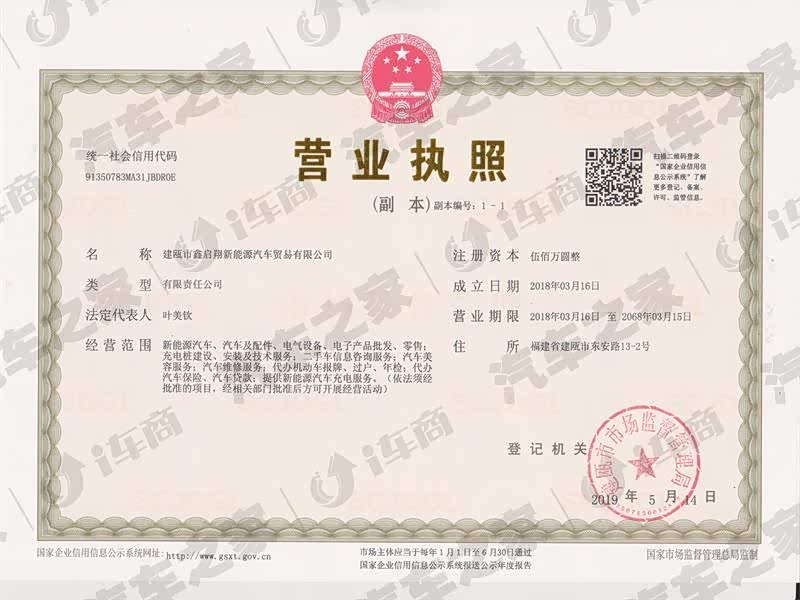 建瓯市鑫启翔新能源汽车贸易有限公司