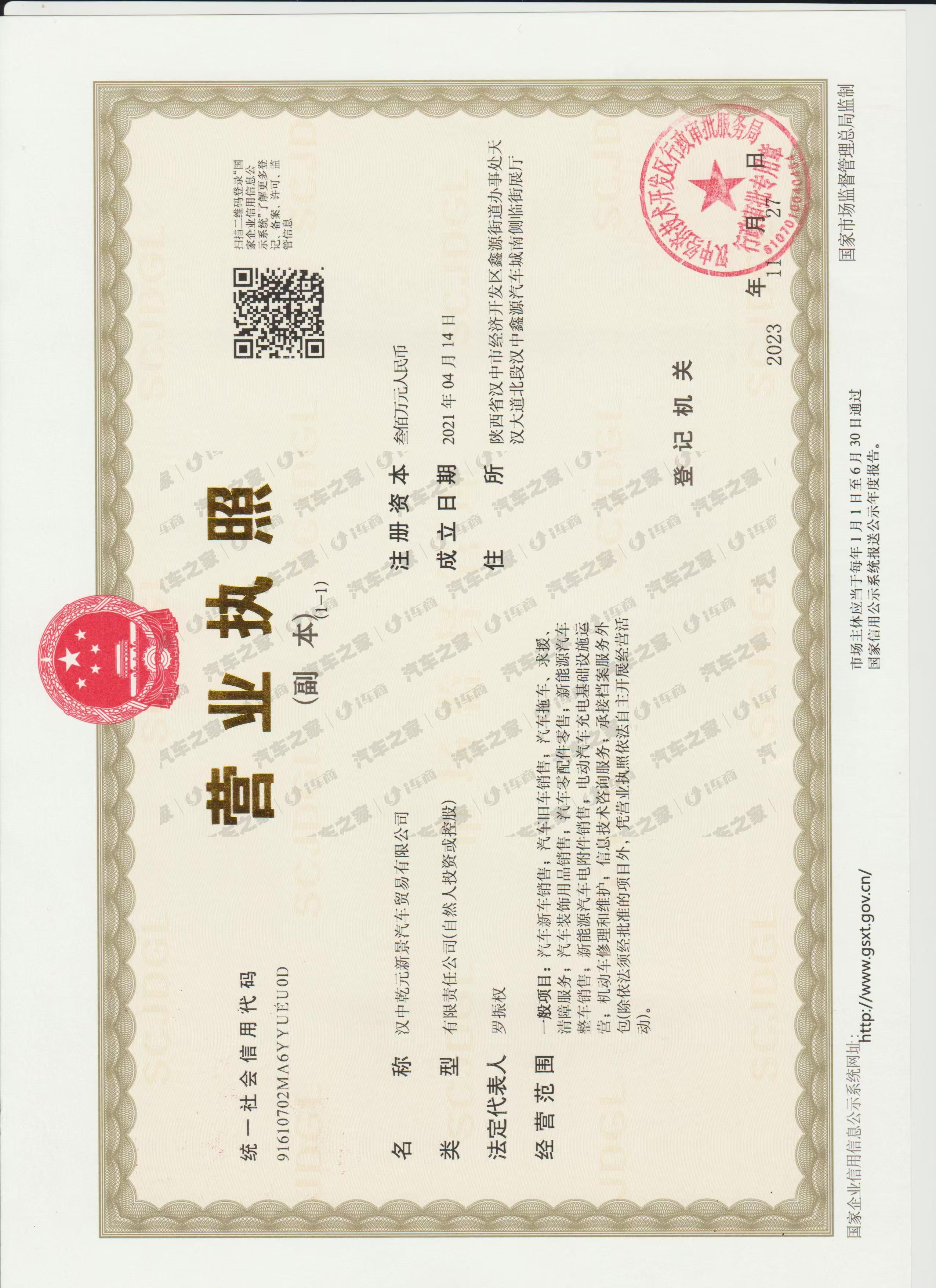 汉中市乾元新景汽车销售服务有限公司成立于2023年8月1日。位于汉中市汉台区天汉大道北段十里村十字路口汉中汽车城临街展厅;本公司是是经比亚迪厂家授权,按厂家要求建设的4S店,同时也是比亚迪汉中唯一授权经销商;经营产品覆盖比亚迪全系车型;公司集整车销售,售后服务,零配件供应,信息反馈,金融保险,二手车评估置换,汽车美容,汽车装潢,新车上牌等多种业务一体。
