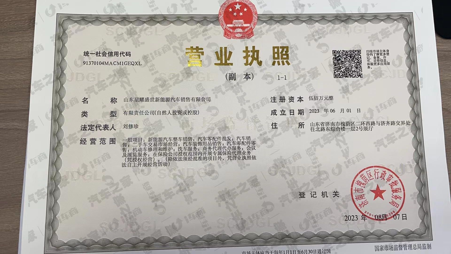 山东星耀盛世新能源汽车销售有限公司
