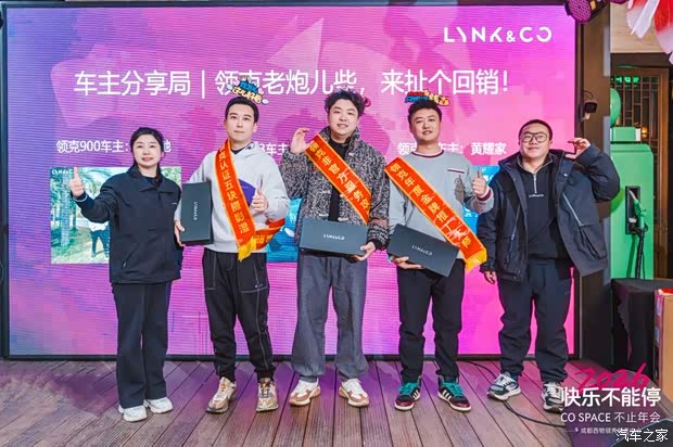 本次不止年会,既是对过往相伴的诚挚致谢,也是对未来携手同行的美好期许。现场的温馨互动、车主们的真挚祝福、彼此间的家人般陪伴,皆是我们与车主双向奔赴的见证,更让每一位Co客都能在领克的大家庭中,感受到真切的温暖与陪伴。