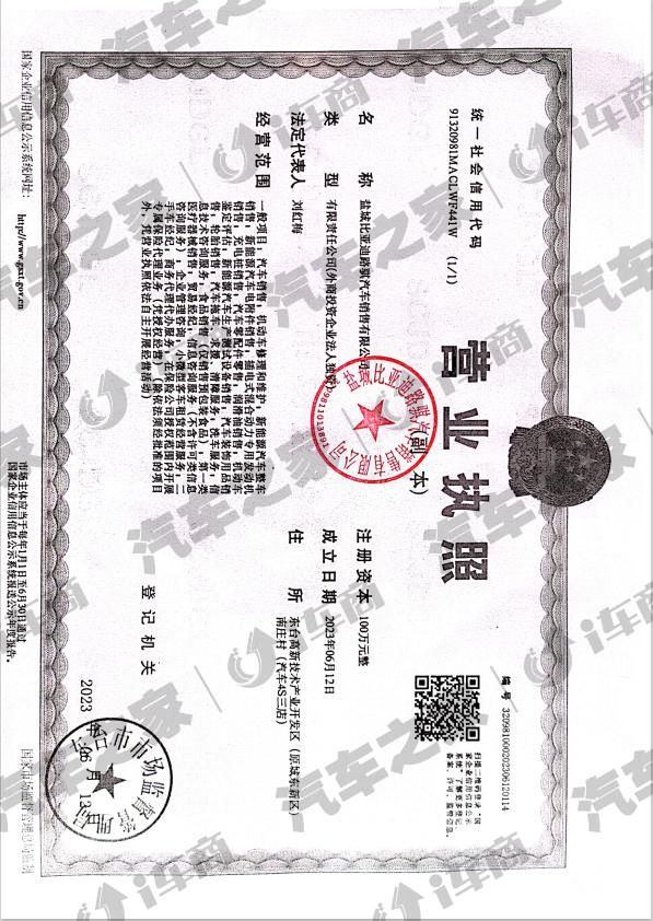 盐城比亚迪路骐汽车销售有限公司,成立于2023年6月,位于东台城东新区永宁汽车城,经营比亚迪汽车海洋网全系车型。