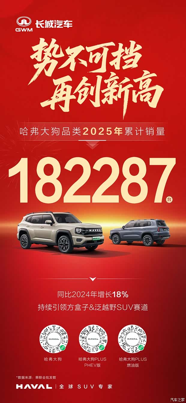 哈弗大狗品类2025年热销182287台!