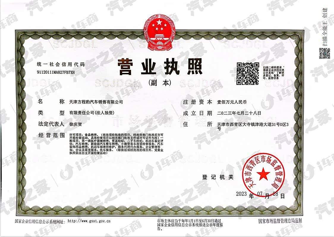 方程豹汽车天津南市零售中心: