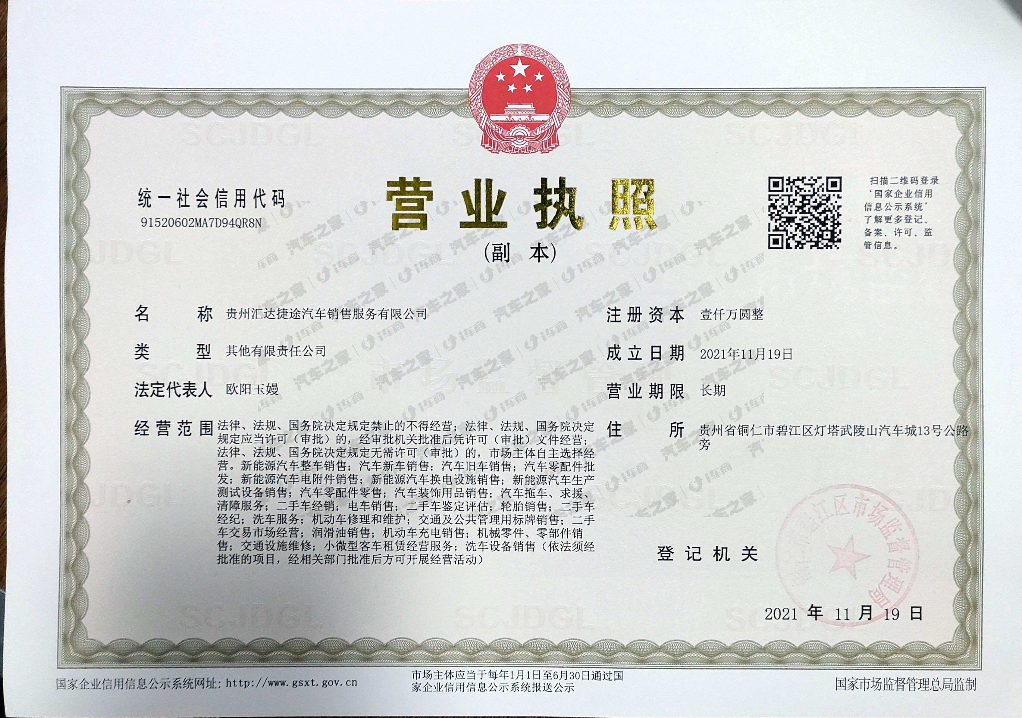 贵州汇达捷途汽车销售服务有限公司