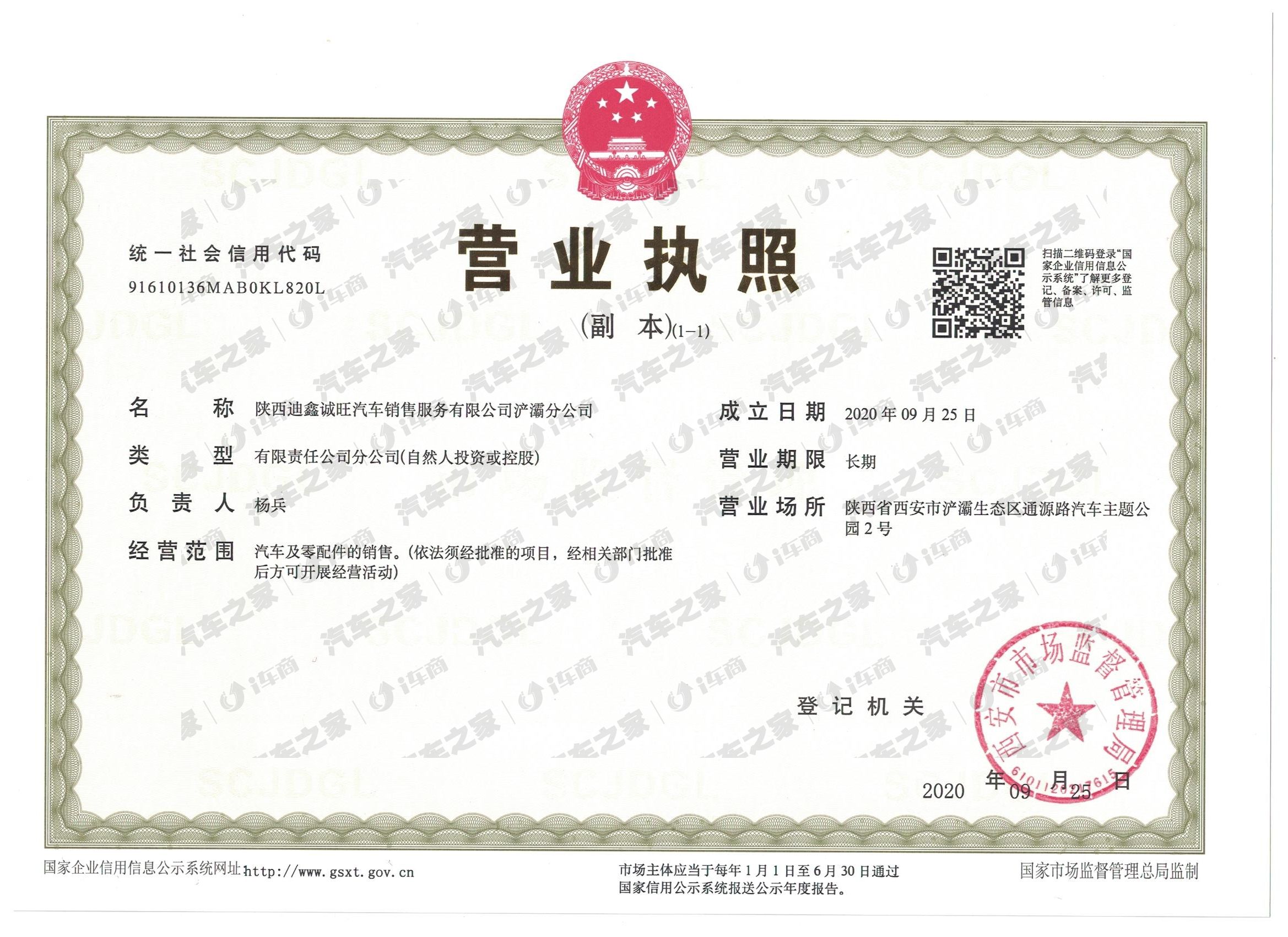 陕西迪鑫诚旺汽车销售服务有限公司浐灞分公司