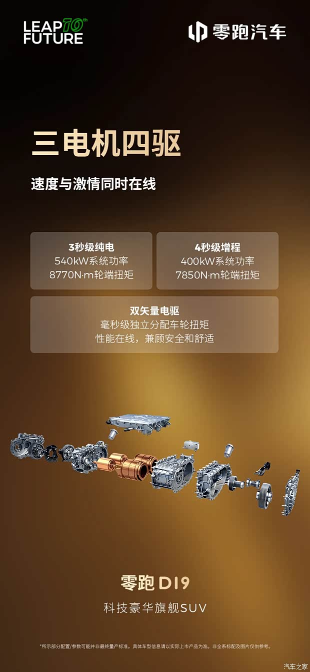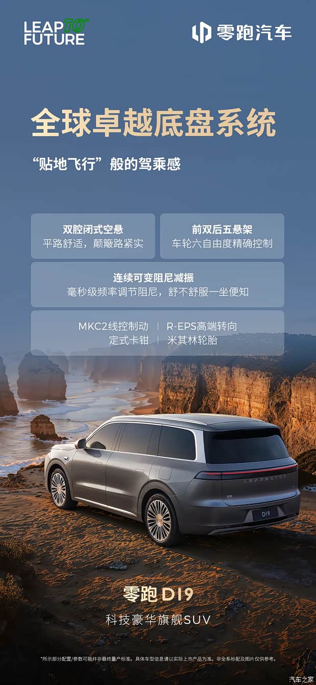 3电机四驱 让速度与激情同时在线 全球卓越底盘系统 给你“贴地飞行”般的驾乘感 LMC 2.0底盘运动融合控制 开着稳、过弯顺、操作秀 50500N·m/deg超高扭转刚性 车身抗造又扎实 D19重新定义科技豪华旗舰SUV的驾控体验 以硬核实力「稳」控全场,让每一程都自在从容