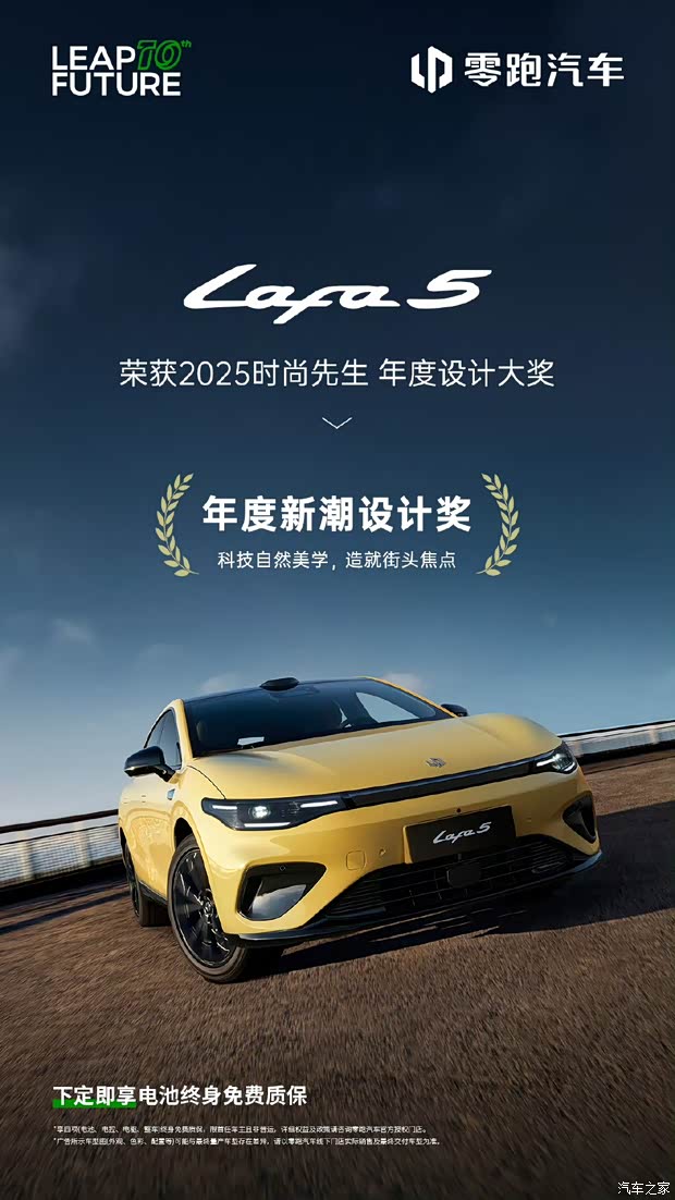 #零跑Lafa5 荣登 @时尚先生Esquire 「2025年度新潮设计奖」 以向上、纯粹、愉悦为设计灵魂 将先锋姿态化为每位用户的个性符号 未来,我们将继续以设计为语言,用科技赋能美学 与所有“Lafa青年”一同奔赴无限可能