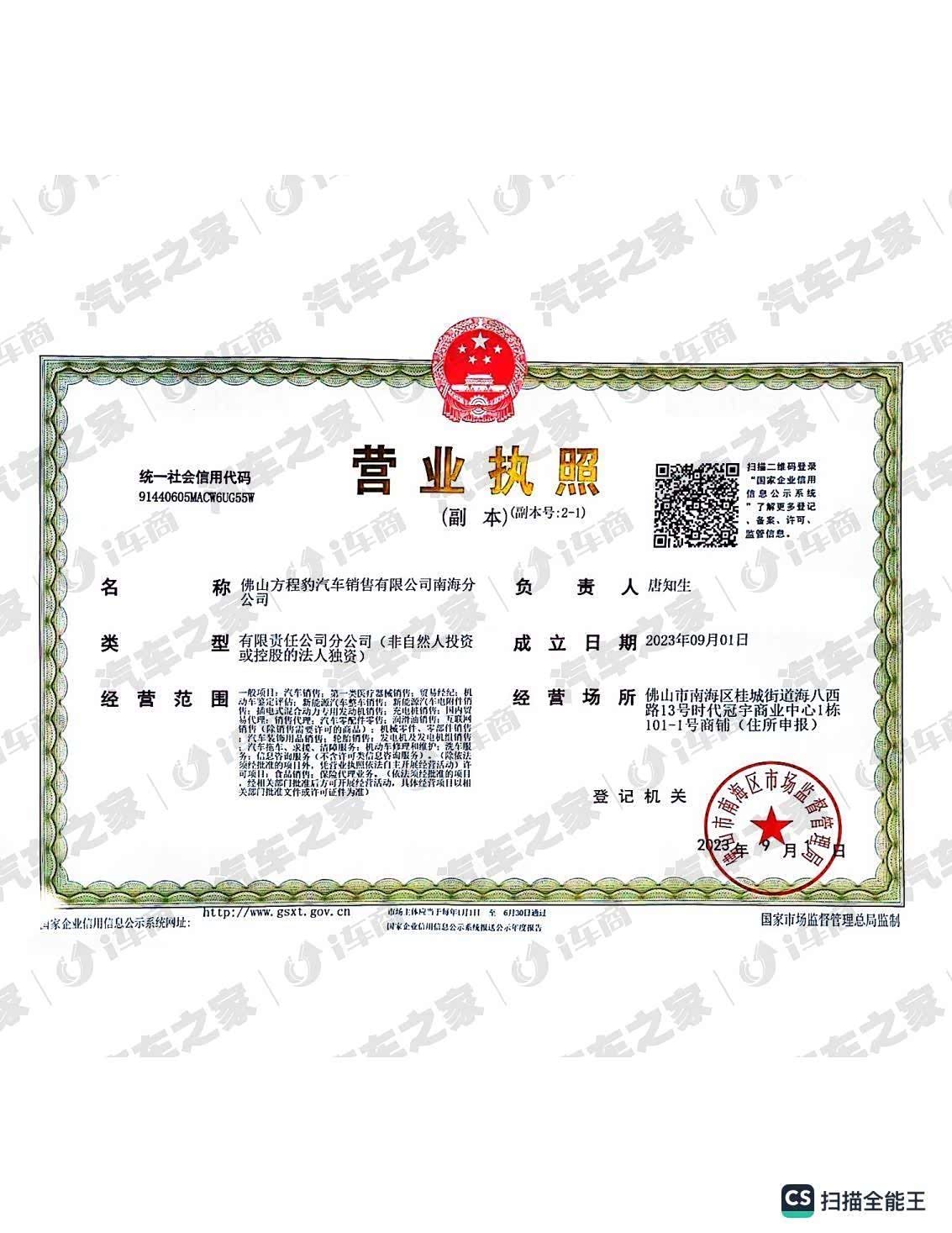 方程豹汽车佛山直营门店布局如下: