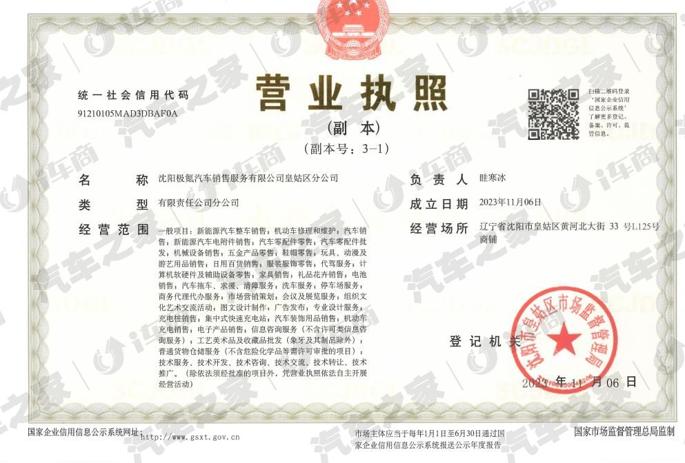 辽宁省沈阳市皇姑区黄河北大街33号三台子万象汇一楼极氪汽车