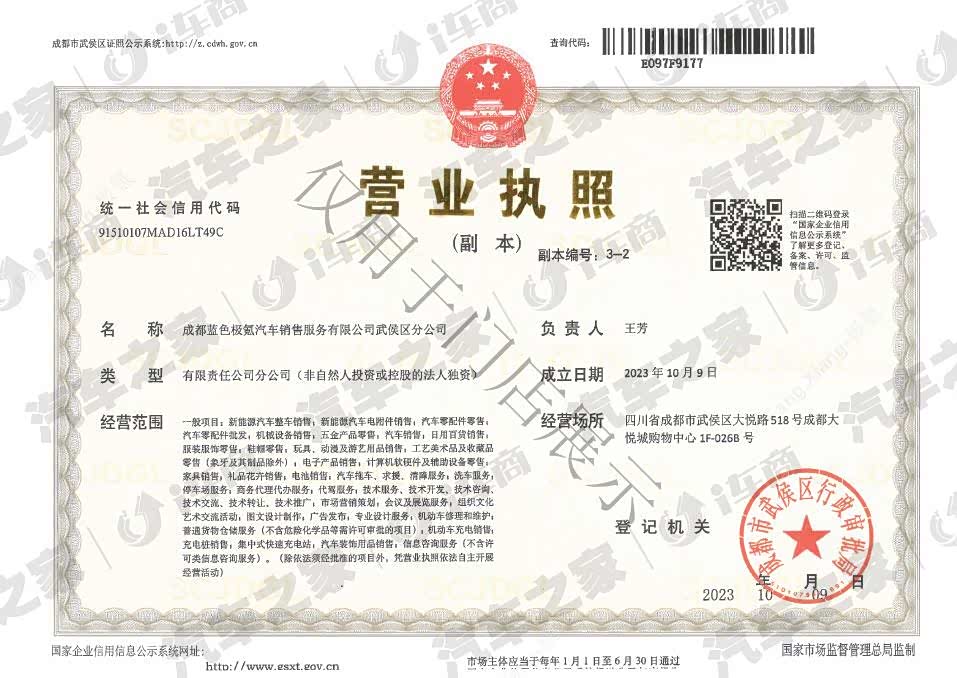 成都蓝色极氪汽车销售服务有限公司武侯区分公司