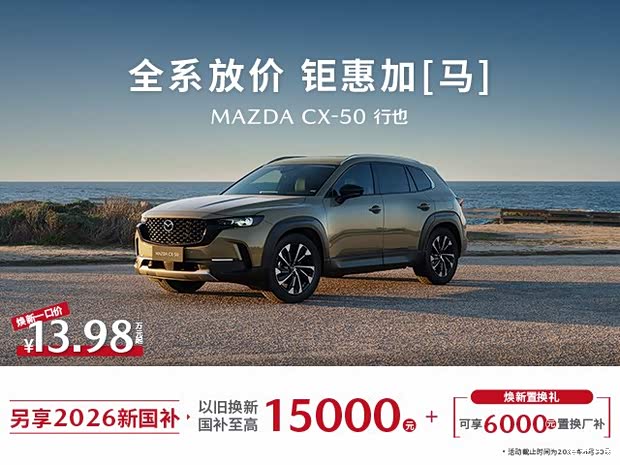 此次,CX-5以 11.58万元 的惊喜起售价,直接降低了主流合资品质SUV的入门门槛。更值一提的是,您还可叠加享受国家“以旧换新”补贴,至高15,