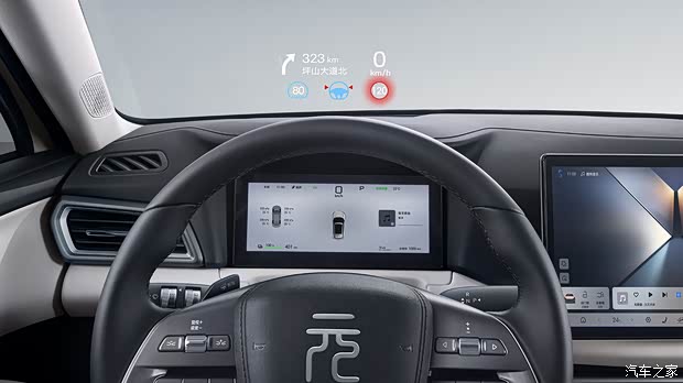 元 UP 的智能座舱高阶版-DiLink 100 功能丰富,支持全场景智能语音控制,3D 控车让用户可以在屏幕上 360 度查看车辆状态并实现操控。8 英寸 W-HUD 抬头显示系统,将重要行车信息投影至前挡风玻璃驾驶员视野内,让用户无需低头即可了解行车关键信息。12.8 英寸智慧屏幕集成导航、影音娱乐、蓝牙电话、智能语音等多项功能,带来智能化的舒享体验。