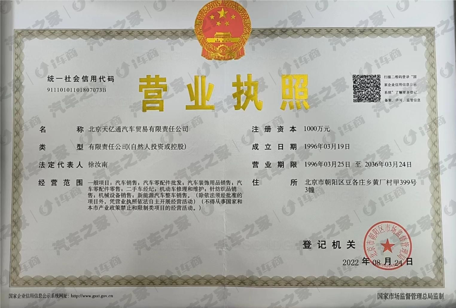 北京天亿通汽车贸易有限责任公司