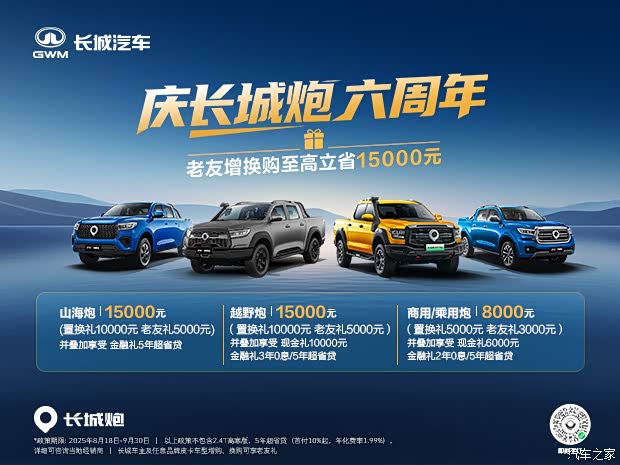 *老友礼:长城车主及任意品牌皮卡车型增/换购或任意品牌微面/微卡/轻客/轻卡换购可享5000元/台购车补贴,且可与置换补贴同享;