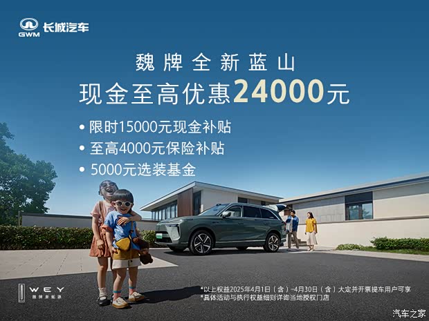 *政策周期:2025年4月1日(含)-2025年4月30日(含)大定且开票提车用户可享。