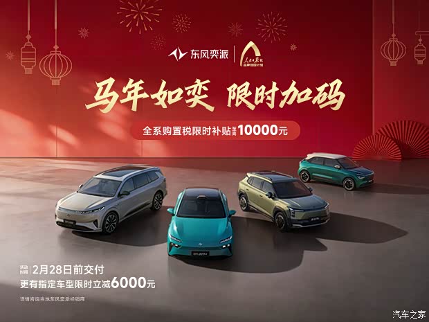 新年启新程,好礼伴你行。作为央企新能源品牌,东风奕派旗下主力车型在各自细分市场均展现出强劲竞争力。2026年开局之际,品牌推出的购车福利覆盖旗下全部主力车型,从购车补贴到金融支持,再到用车保障,全方位满足不同用户群体的购车需求。未来,东风奕派将继续坚守安全、驾控、智能、品质四大技术护城河,以更丰富的产品矩阵、更贴心的服务与更实在的福利,带着对科技的热忱与对用户的赤诚,与用户共赴更加精彩的未来。
