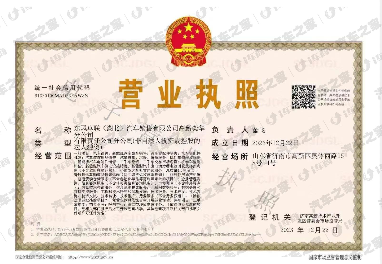 东风卓联(湖北)汽车销售有限公司高新奕华分公司